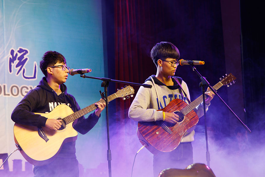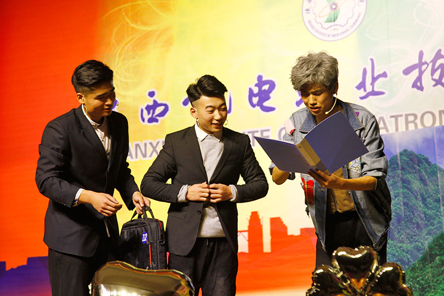 在随后的文艺晚会中,学生们表演了精彩纷呈的文艺节目,欢迎17级学生加入陕西机电职院这个大家庭,17级辅导员马剑宇老师演唱了歌曲《five hundred milies》点燃了会场的气氛。国旗班小品《训练场上》展现了军人的风姿,17级藏族学生嘎桑单曲演唱了藏语歌曲《我亲爱的父母》表达了对父母的感恩,跆拳道协会的表演展现了学生坚毅、吃苦耐劳的精神风貌,也为本场晚会划上了圆满的句号。