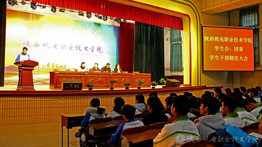 团委李明老师宣读2017年度学生会、团委学生干部聘任决定,本次聘任任命何晶等12名同学为陕西机电职业技术学院2017-2018学年度团委学生会干部,学院领导为同学们颁发聘书。大会上,受到聘任的学生干部先后发言,他们表示在今后的学习和工作中一定会严格要求自己,以身作则,服从学校和老师的安排,团结部门的委员,把本职工作做好。