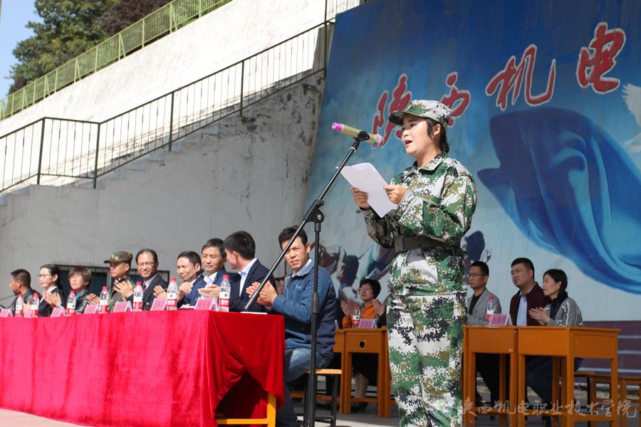 党委书记、院长伊逊智作了讲话,首先向出席汇报表演的部队领导和教官表示衷心的感谢!向新同学加入陕西机电职业技术学院这个温馨的大家庭表示热烈的欢迎!表示今天的军训汇报表演展示了陕西机电职业技术学院学生的精、气、神。并对所有新生提出了六点希望:一是希望同学们做有理想信念的大学生;二是希望同学们做有爱国情怀的大学生;三是希望同学们做有大德大爱的大学生;四是希望同学们做有真才实学的大学生;五是希望同学们做有奋斗精神的大学生;六是希望同学们做有综合素质的大学生。