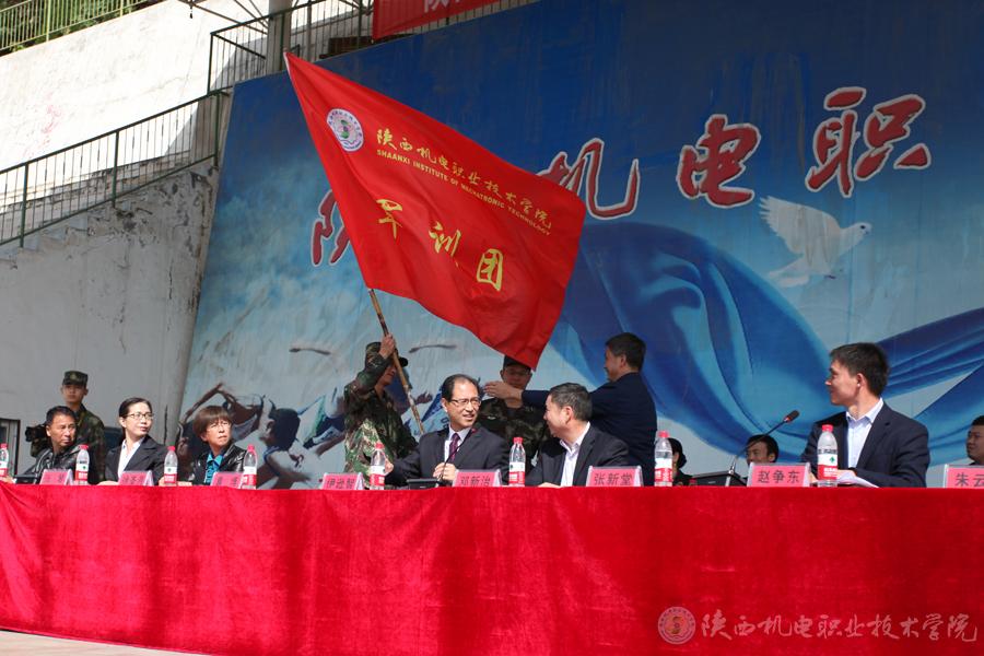 副院长张新堂代表学院从承训部队手中收回军训团旗。