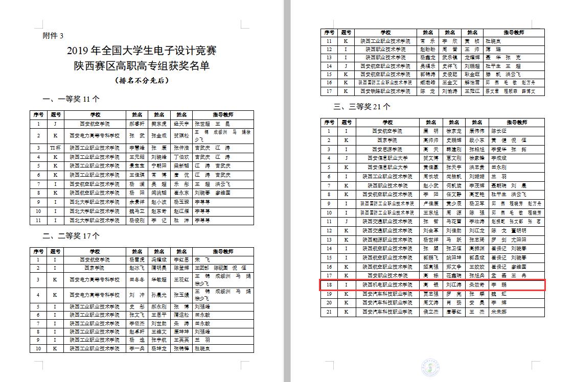 陕西省教育厅办公室关于公布2019年全国大学生电子设计竞赛陕西赛区获奖名单的通知链接请点击: