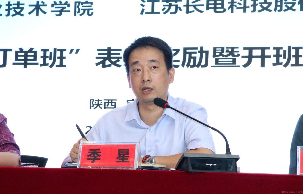 9月17日,我校隆重召开“长电订单班”表彰暨开班仪式。江苏长电科技股份有限公司(以下简称长电科技)人事部校企合作专案经理季星、陕西机电职业技术学院副院长徐圣月、电子与信息学院院长姜有奇、智能制造学院副院长马海彦及2020届、2021届“长电订单班”辅导员、2021届“长电订单班”学生参会。会议由校企合作处副处长田正本主持。