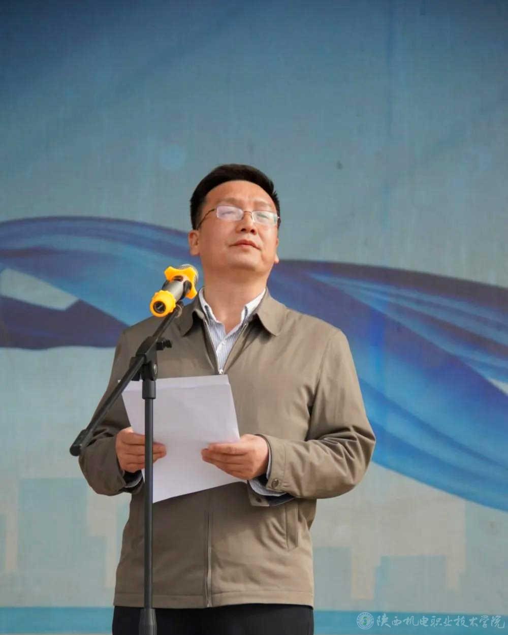 当前,陕西机电职业技术学院全校上下正在深入开展党史学习教育,使今年的春季运动会开幕式呈现出鲜明的党史学习教育成果,展现出昂扬奋进的精神风貌。学院一直以来大力开展阳光体育活动,隆重举办运动会,目的是引导广大同学“走下网络、走出宿舍、走向操场”,坚持“健康向上、不懈奋斗”的体育精神,使坚持体育锻炼成为青年大学生的生活方式和健康时尚。希望全体运动员赛出水平,赛出风格!以优异成绩迎接中国共产党成立100周年。