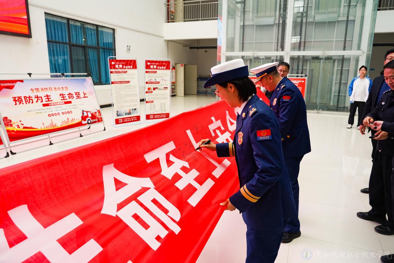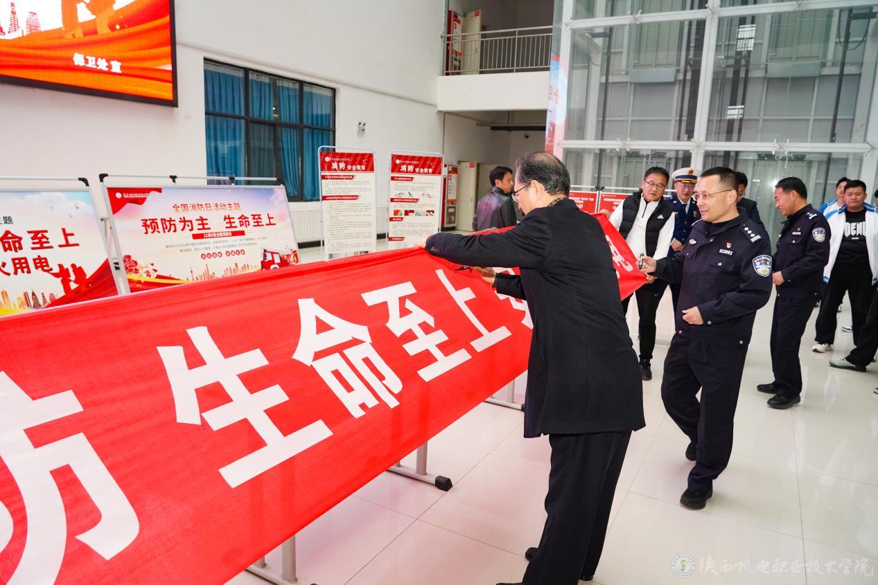 为贯彻落实省委教育工委《关于开展2025年全省教育系统消防宣传月活动的通知》要求,11月4日,陕西机电职业技术学院联合宝鸡市消防救援大队、宝鸡市公安局金台分局成功举行“消防宣传月”启动仪式。学校党委书记伊逊智出席。启动仪式由保卫处副处长常小凯主持。