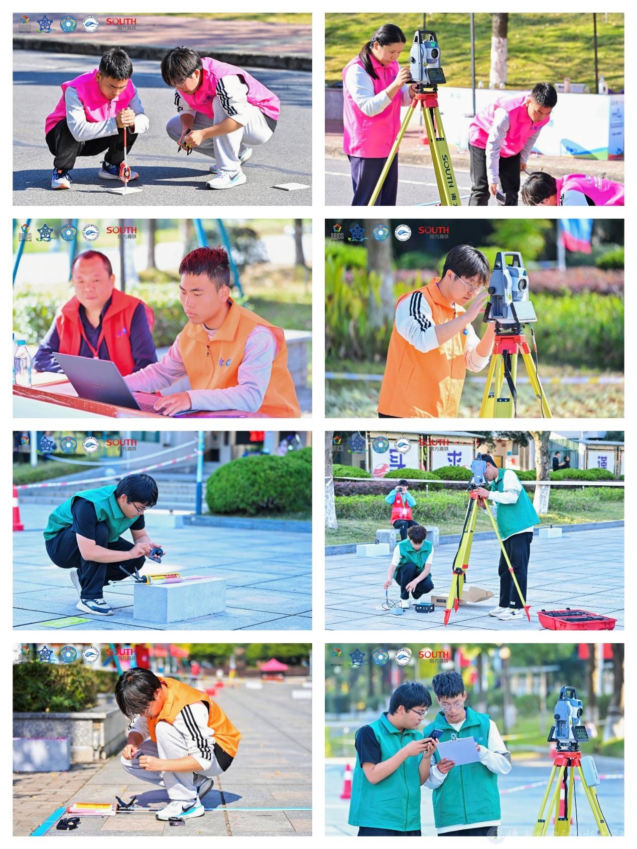本次大赛为团体赛,每支参赛队由3名选手组成,共设三大核心赛项,五个小项的竞赛内容:轨道精测精调赛项(含外业采集和内业调整)要求选手运用高精度检测设备完成轨道几何状态采集与平顺性调整;工程施工测量赛项(含外业铁路施工放样和内业桥隧施工测量仿真)考验选手的施工控制网测设与放样能力;涉铁自动化监测赛项全面检验选手的自动化监测布设、数据采集与智能分析的综合能力。本次赛事不仅项目设置丰富,且技能考核标准高、观测精度较高。面对多重挑战,我院学子始终沉着稳健、凝心聚力、追求卓越,凭借过硬的综合素养顺利完成各项比拼,最终斩获佳绩。