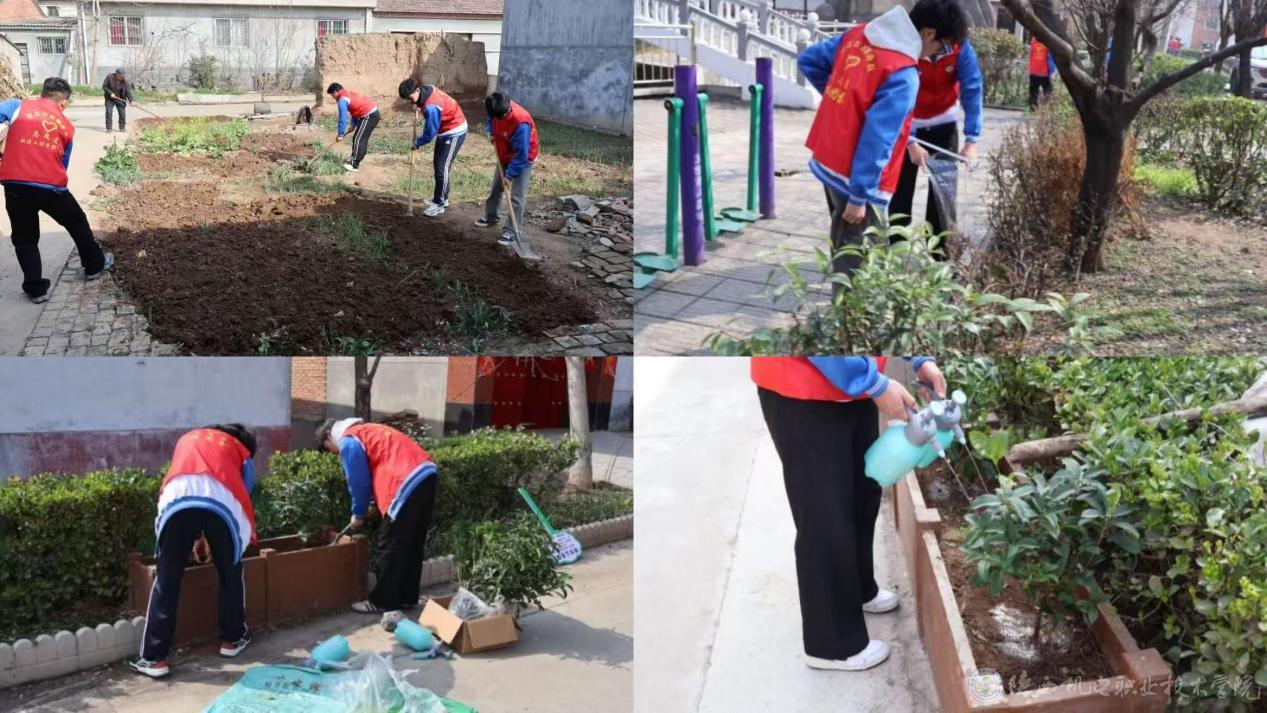 在做好入户服务的同时,志愿者们对村庄公共区域进行了全面卫生清扫,进一步美化村容村貌。在村内的花坛中,大家栽种新树苗,为村庄增添一抹新绿,还对先前种下的树苗进行培土、浇水,用一株株绿意装点出美丽的乡村景致。